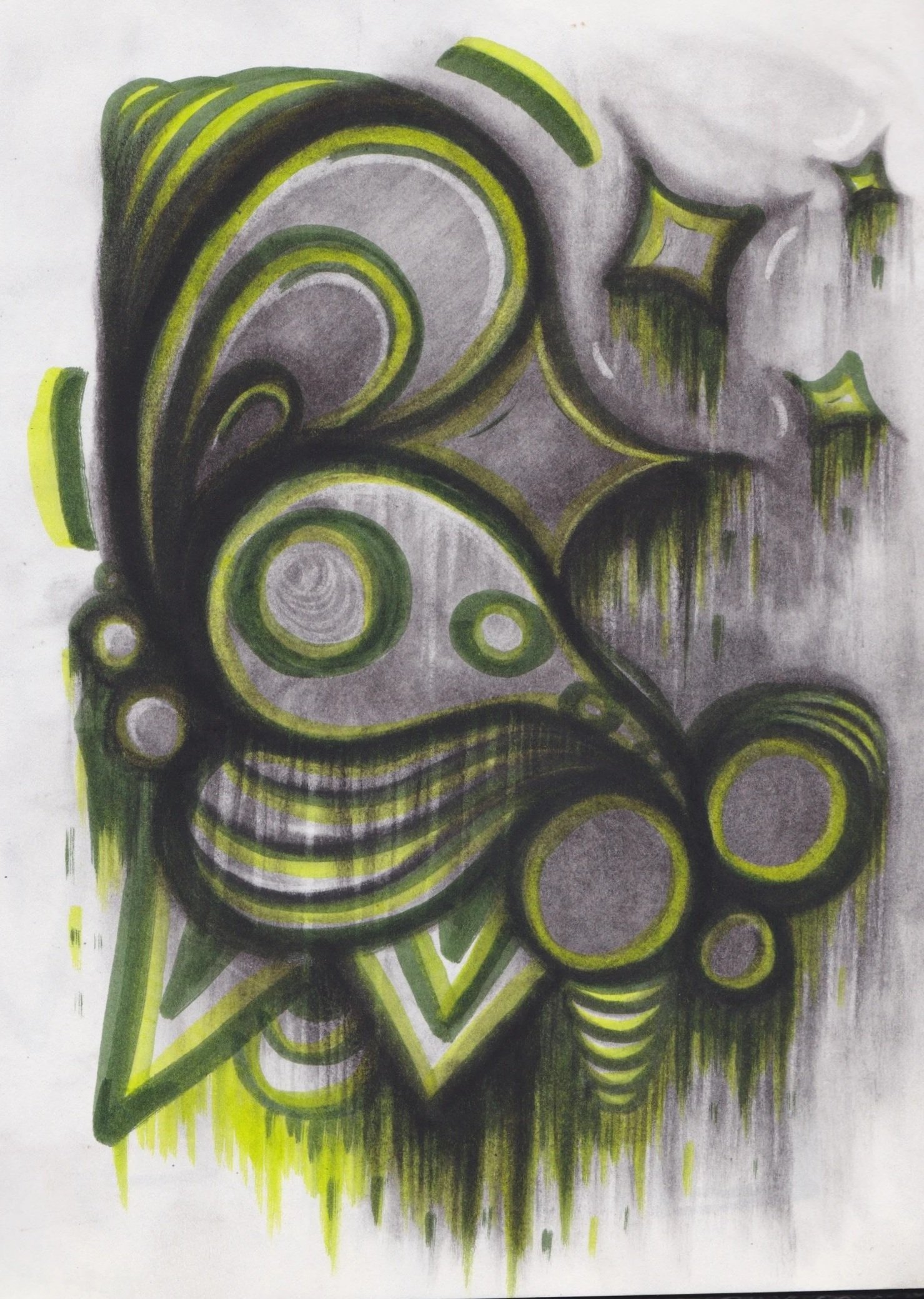 Made 2024. Water based markers and charcoal on watercolor paper. 24x28 inches.