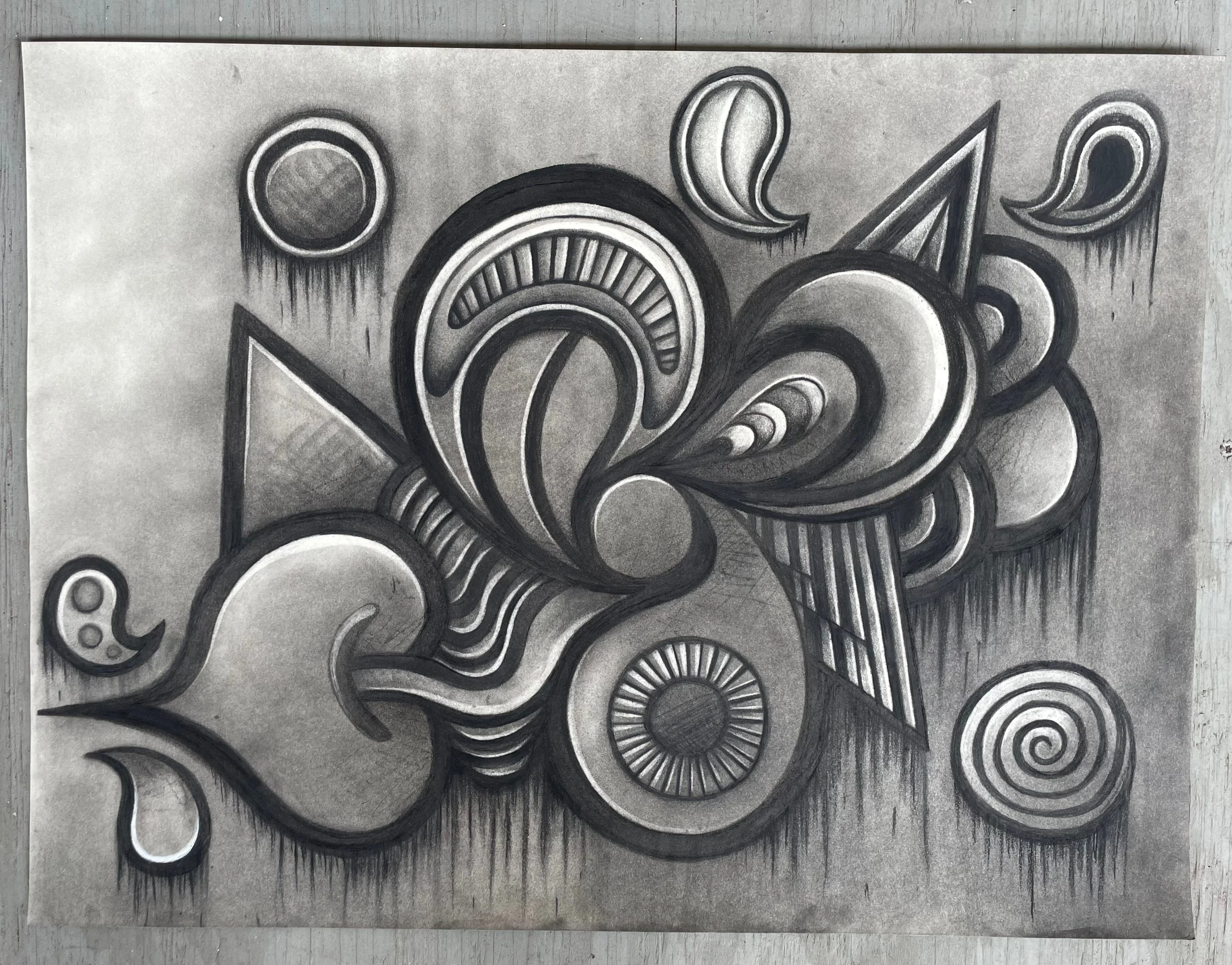 Made 2025. Charcoal on drawing paper. 24x18 inches